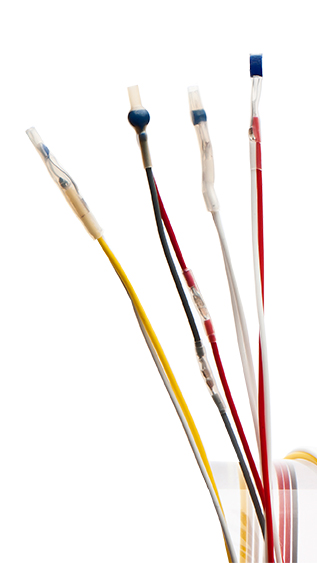 Elemente verlängert mit Litzen oder Kabeln, verdrillt, geschirmt oder ummantelt – wir fertigen kundenspezifisch.
