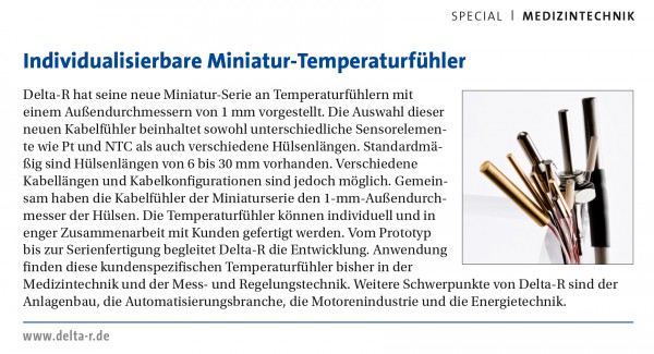 Die Elektronikpraxis berichtet über die Temperatursensoren von Delta-R. Hier geht’s zum Artikel.